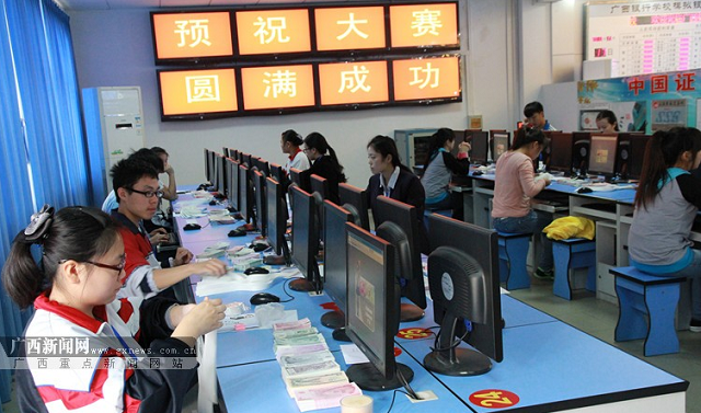 11月17日上午,2013年全國中職學(xué)生銀行技能競賽在廣西銀行學(xué)校舉行。本次比賽是首屆全國中職學(xué)生銀行技能競賽,比賽由全國金融職業(yè)教育教學(xué)指導(dǎo)委員會主辦,廣西銀行學(xué)校承辦,深圳智盛信息技術(shù)股份有限公司技術(shù)支持。來自北京、廣州、杭州、合肥、云南、陜西共計14個參賽代表隊、13所參賽中等職業(yè)學(xué)校、42名學(xué)生參賽。
