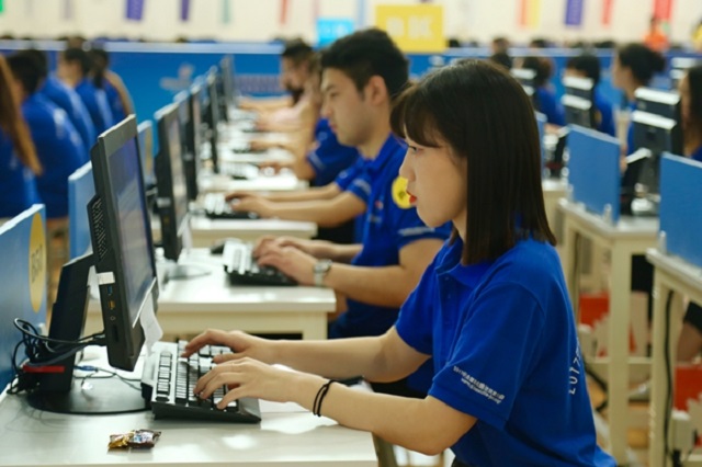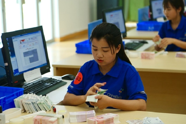 學(xué)生進(jìn)行銀行手工技能比賽