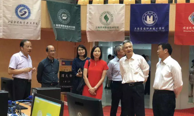隨后廣州番禺職業(yè)技術(shù)學院校長何友義、財經(jīng)學院楊則文院長及各陪同視察的領(lǐng)導前往賽場視察工作。期間新加坡南洋理工學院校長一行也到現(xiàn)場進行參觀,并贊嘆道:“目前世界技能大賽還沒有的項目,你們已經(jīng)在全國開始舉辦了,太厲害了!”
