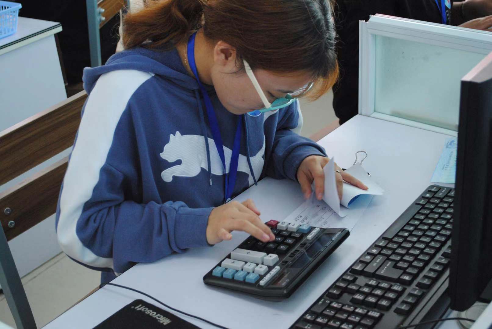 “銀行從業(yè)知識(shí)”競(jìng)賽、“銀行基本技能”競(jìng)賽、“銀行業(yè)務(wù)能力”競(jìng)賽由每支參賽隊(duì)4名選手分別獨(dú)立完成。其中,“銀行基本技能”競(jìng)賽由每位參賽選手分別選擇“傳票算”、“字符錄入”、“手工點(diǎn)鈔”、“貨幣防偽與鑒別”四個(gè)單項(xiàng)中的一個(gè)單項(xiàng)進(jìn)行比賽,選手之間單項(xiàng)不得重復(fù)。