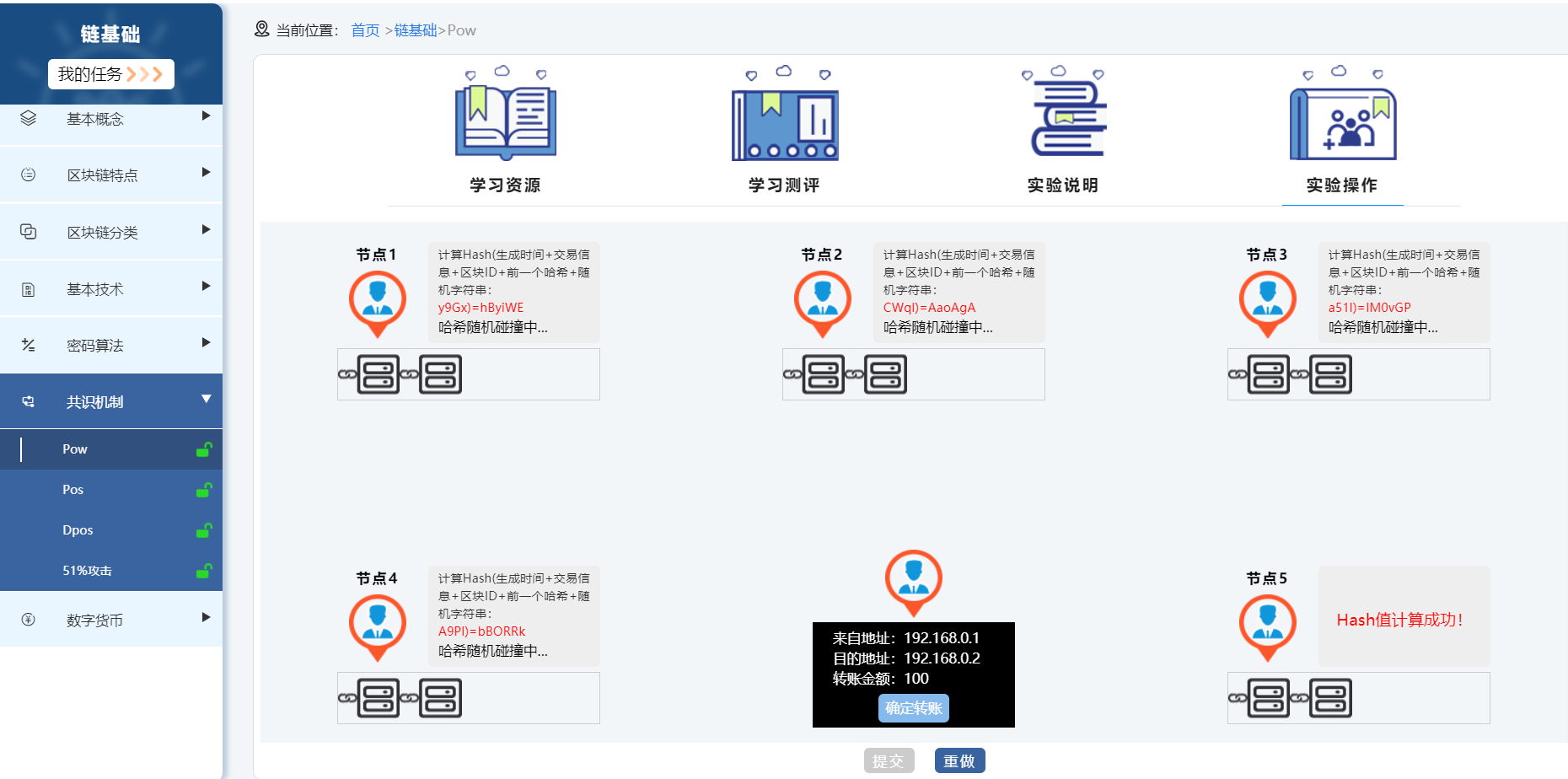 理實(shí)一體:理實(shí)一體化設(shè)計(jì)是本平臺(tái)的特色功能,學(xué)生在學(xué)習(xí)區(qū)塊鏈技術(shù)、區(qū)塊鏈金融應(yīng)用理論知識(shí)點(diǎn)的同時(shí),設(shè)計(jì)了 相應(yīng)的實(shí)驗(yàn)操作,達(dá)到教中學(xué)、學(xué)中做、做中創(chuàng)的學(xué)習(xí)效果。