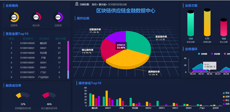 首先,智盛區(qū)塊鏈金融應(yīng)用創(chuàng)新平臺(tái)選用了供應(yīng)鏈金融、票據(jù)等經(jīng)典應(yīng)用場景作為案例,使學(xué)生了解區(qū)塊鏈技術(shù)在金融領(lǐng)域的應(yīng)用情況。