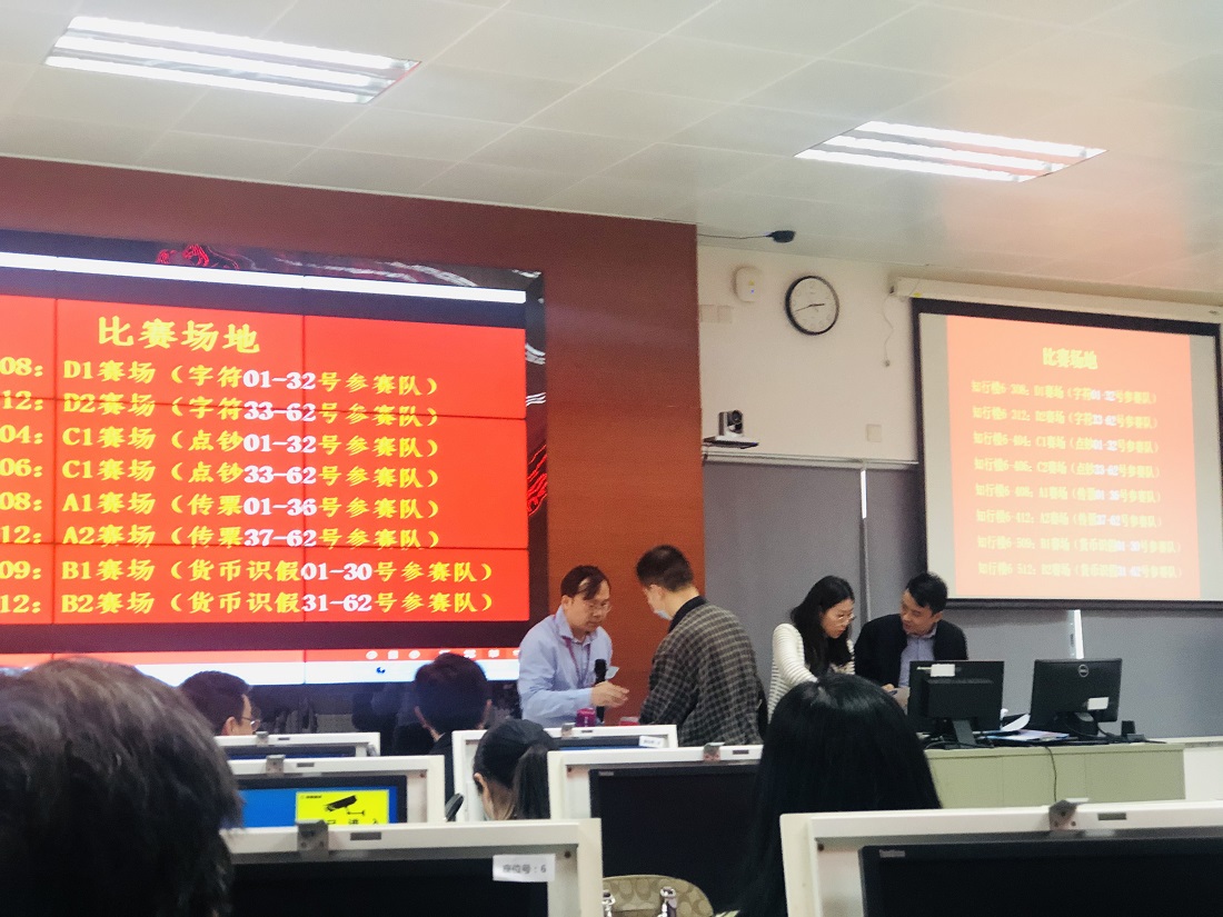 最后是10分鐘的“金融基本技能”競(jìng)賽,每位參賽選手分別選擇“傳票算”、“字符錄入”、“手工點(diǎn)鈔”、“貨幣防偽與鑒別”四個(gè)單項(xiàng)中的一個(gè)單項(xiàng)來進(jìn)行比賽。
