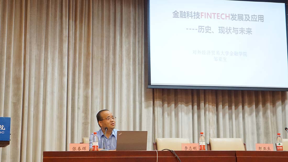 開幕式結(jié)束后,先由對外經(jīng)濟(jì)貿(mào)易大學(xué)金融學(xué)院院長鄒亞生圍繞"ABCD等新技術(shù)在金融行業(yè)發(fā)展及應(yīng)用現(xiàn)狀”這一主題;分析了人工智能、區(qū)塊鏈、云計(jì)算和大數(shù)據(jù)這四大領(lǐng)域在金融行業(yè)的發(fā)展前景與應(yīng)用情況。