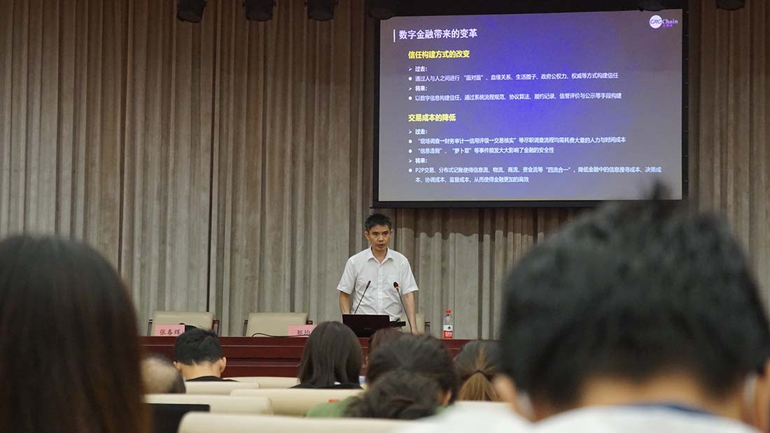 下午,由廣州運(yùn)通鏈達(dá)金服科技有限公司總經(jīng)理鄒均做“區(qū)塊鏈技術(shù)在金融領(lǐng)域應(yīng)用探討落地應(yīng)用場景方面”主題報(bào)告;以區(qū)塊鏈在數(shù)字化轉(zhuǎn)型中的作用來進(jìn)行展開分享。