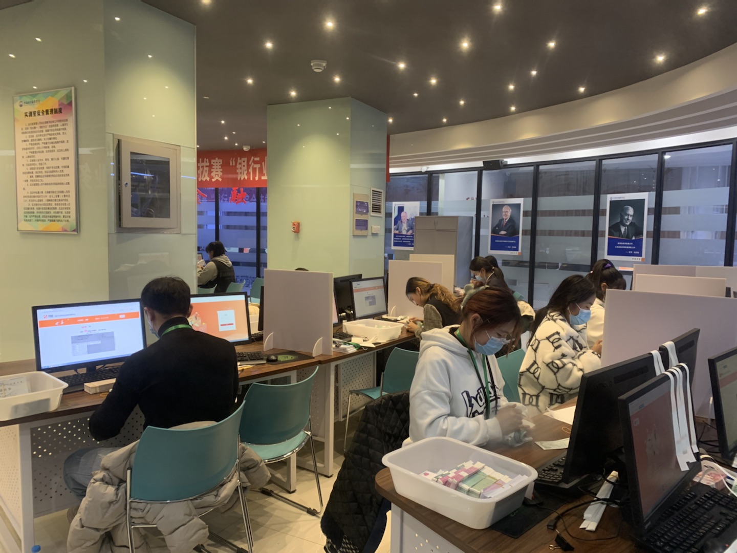 大賽過程中,選手們個個胸有成竹,凝神聚氣,點(diǎn)鈔、計數(shù)、扎把,有條不紊、一氣呵成,每名選手都在為自己團(tuán)隊(duì)的成績努力奮戰(zhàn),展示出了扎實(shí)的業(yè)務(wù)技能。現(xiàn)場氛圍緊張而又激烈,各參賽隊(duì)的選手們努力拼搏,你追我趕,賽出了高水平,展現(xiàn)了新風(fēng)貌。