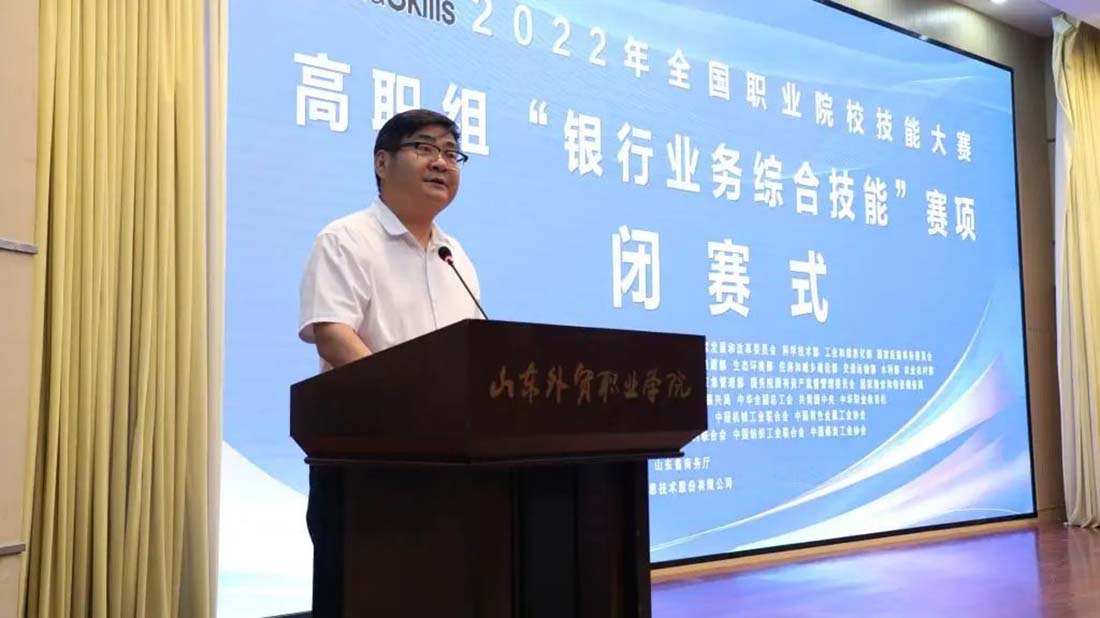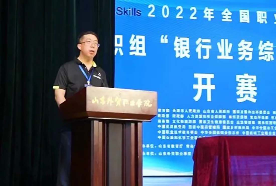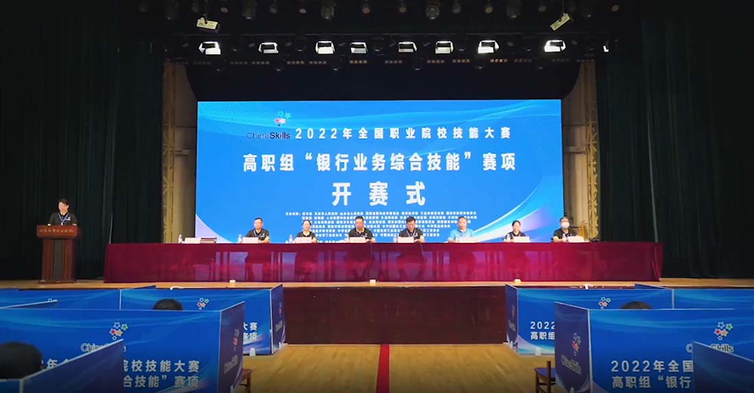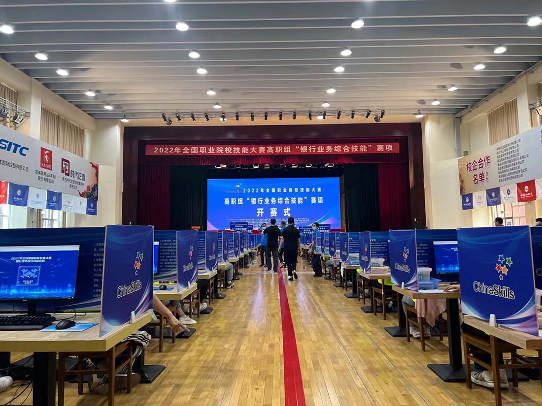 2022年8月14日至15日,由教育部、天津市人民政府、山東省人民政府、國(guó)家發(fā)改委聯(lián)合其他國(guó)家部委主辦,山東省教育廳、青島市人民政府、山東省商務(wù)廳承辦,山東外貿(mào)職業(yè)學(xué)院、深圳智盛信息技術(shù)股份有限公司協(xié)辦的2022年全國(guó)職業(yè)院校技能大賽高職組“銀行業(yè)務(wù)綜合技能”賽項(xiàng)圓滿落下帷幕!來(lái)自全國(guó)28個(gè)省、直轄市、自治區(qū)(不含港澳臺(tái))的55個(gè)學(xué)校55支代表隊(duì)220名選手在嚴(yán)格遵守當(dāng)?shù)叵嚓P(guān)防疫要求前提下同臺(tái)競(jìng)技,展示技能風(fēng)采。