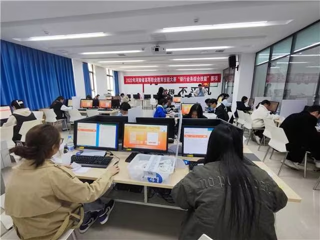 2023年3月24日,由河南省教育廳主辦、河南經(jīng)貿(mào)職業(yè)學(xué)院承辦的河南省高等職業(yè)教育技能大賽“銀行業(yè)務(wù)綜合技能”賽項(xiàng)順利開幕!大賽代表隊(duì)共有64支,參賽人數(shù)256人,獲獎(jiǎng)比例一等獎(jiǎng)15%,二等獎(jiǎng)25%,三等獎(jiǎng)30%。