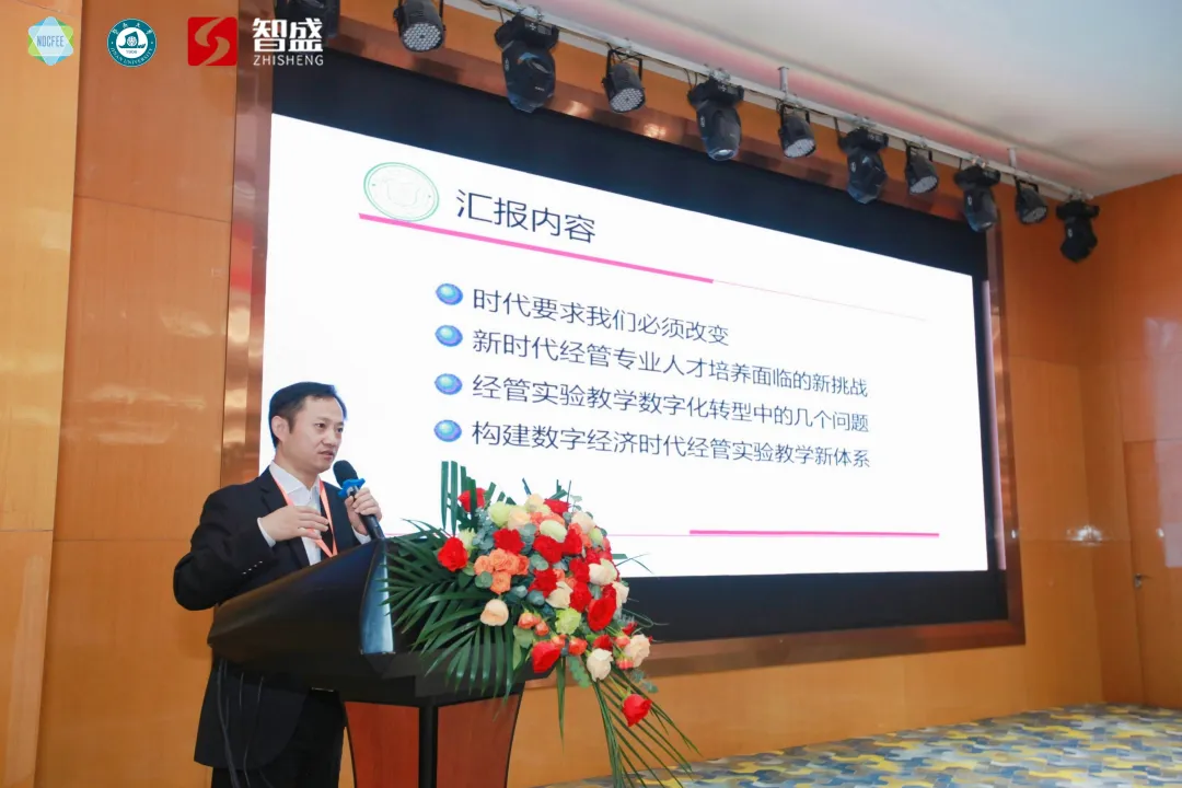 周紅剛教授以經(jīng)管類實(shí)驗(yàn)教學(xué)在數(shù)字經(jīng)濟(jì)為何需要改革以及如何改革為主題,首先在會(huì)議中他介紹是時(shí)代讓我們必須改變,二十大報(bào)告提到推進(jìn)教育數(shù)字化以及教育部明確提出全面推進(jìn)高等教育教學(xué)數(shù)字化等,與此同時(shí),數(shù)字經(jīng)濟(jì)的告訴發(fā)展對(duì)高等教育提出了更高的要求,所以目前新時(shí)代經(jīng)管專業(yè)人才培養(yǎng)面臨到新挑戰(zhàn),如升級(jí)的復(fù)合型人才需求,隨后周紅剛教授詳細(xì)剖析了經(jīng)管實(shí)驗(yàn)教學(xué)數(shù)字化轉(zhuǎn)型中的問(wèn)題,在數(shù)字化經(jīng)管專業(yè)人才培養(yǎng)目標(biāo)和人才定位不夠明確,科研成果向教學(xué)的轉(zhuǎn)化、個(gè)性化教學(xué)不足等,因此需要構(gòu)建數(shù)字經(jīng)濟(jì)時(shí)代經(jīng)管實(shí)驗(yàn)教學(xué)新體系,要明晰供與需,從教師的教學(xué)資源和學(xué)生需求出發(fā),以學(xué)生為中心,關(guān)注學(xué)生的創(chuàng)新思維與批判性思維,加強(qiáng)實(shí)驗(yàn)教學(xué)師資隊(duì)伍建設(shè)。